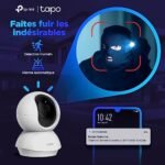 【Détection de mouvement et Alarmes】Recevez des notifications instantanées depuis l’application Tapo lorsqu’un mouvement est detecté. Déclenchez des effets lumineux et sonores pour effrayer les visiteurs indésirables
